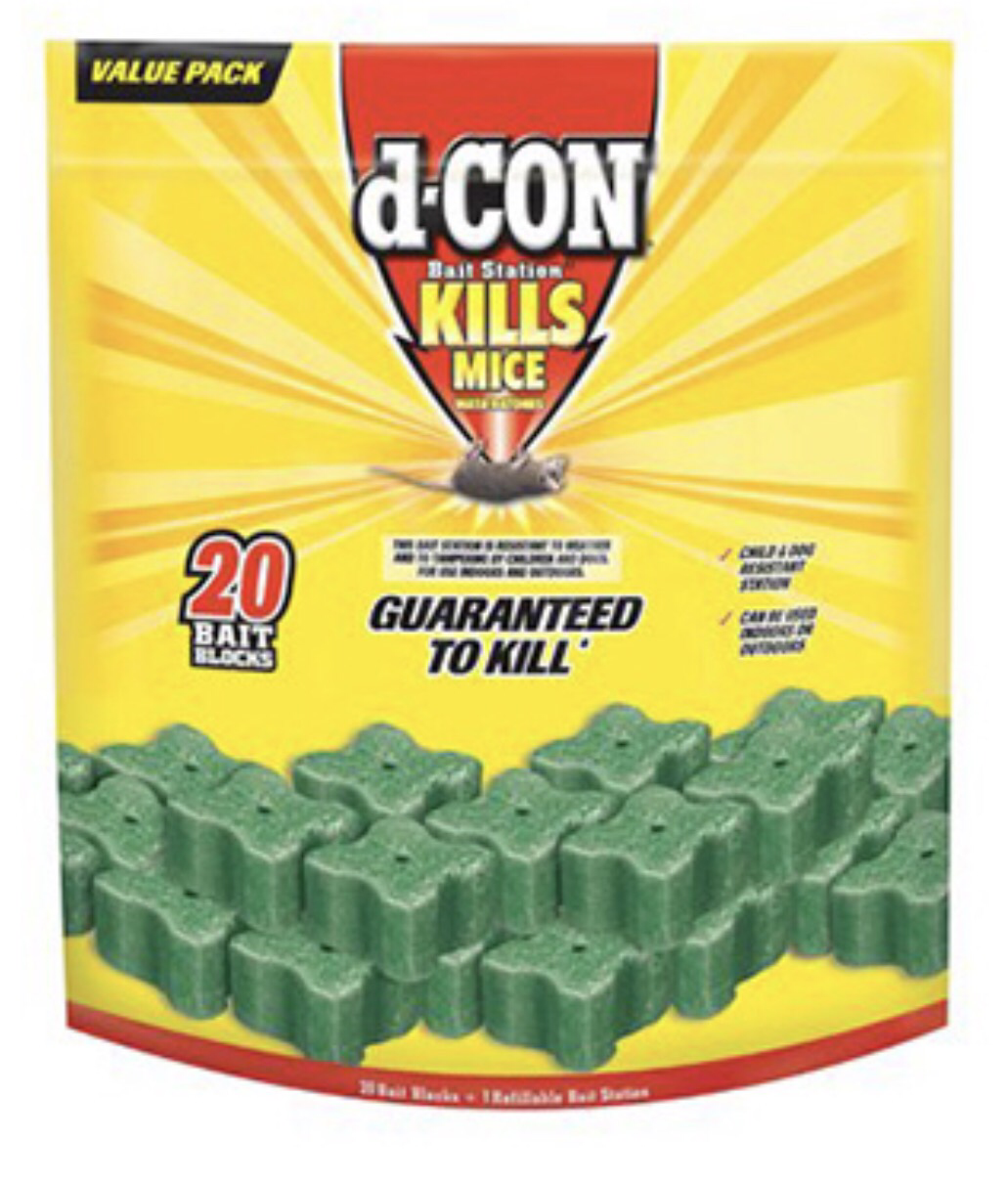 Today’s D-Con is not your father’s D-Con, which was comprised of Warfarin, in and itself bad enough. This chemical causes a breakdown of the clotting mechanism, and the hapless critter simply bleeds to death. They bleed through their nose, gums and lungs and die of suffocation and blood loss. Today’s D-con also incorporates a chemical, brodifacoum, which intensifies the deadly mechanism and insures a quicker but still horrifying death. The EPA has moved to ban 12 varieties of D-Con as it constitutes an unreasonable threat to pets and children. Some of these varieties also contain a neurotoxin, for which there is no known antidote. These chemicals also cause a break down of the capillaries within the circulatory system. This poison is carefully prepared in a tasty mix so as to fool mice and rats into thinking they had stumbled onto a feast of epic proportions. Dogs and cats love the stuff.