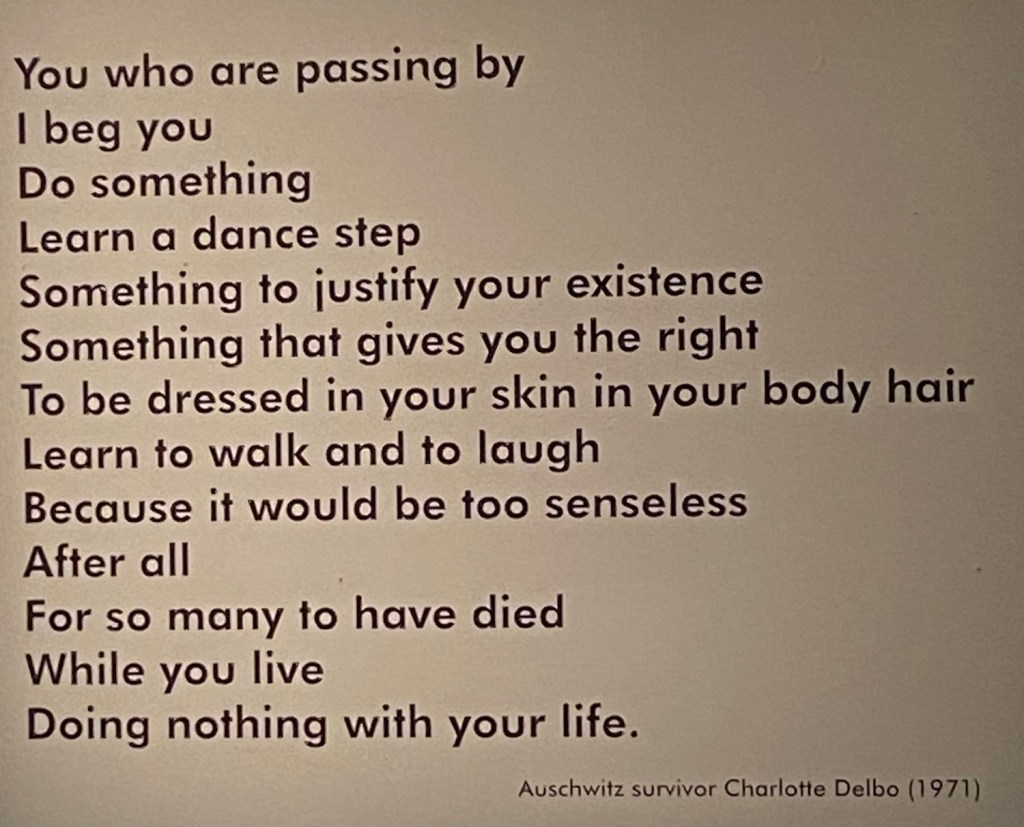 A mix of emotions have ranged through me as I process the lessons from this exhibit. The power of a country’s military, the hatred that fairly seethes through our country today, the incredible power we have vested in the Presidency, the flaunting of our constitution, our Pollyanna outlook that all is going to be fine, what will be will be. The German economy, destroyed in WWI, offered Adolph Hitler an opportunity to seize control of Germany and shape it to reflect his idea of a great society, racially pure and devoid of folks who did not meet his ethnicity standards. The exhibit teaches. History teaches. It was a Veteran’s Day that I won’t forget.