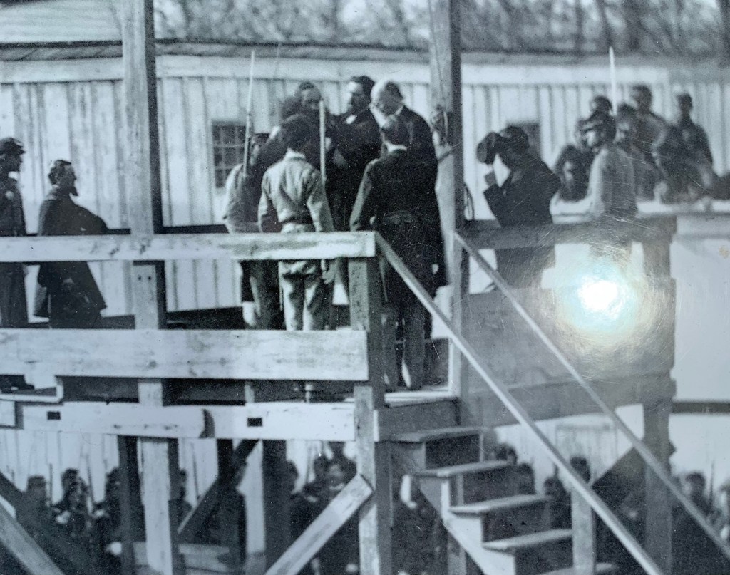 There was soon to be another hanging. The prison commandant, one Cpt. Henry Wirz, was one of a few military officers hung after the Civil War. Historians today question the propriety of hanging the Captain, as he made every effort to secure rations and better living conditions for his prisoners, all futile as prisoners of war are accorded little consideration throughout history. He is thought to be a scapegoat for the political entities who needed to assuage the sensitivities of those who were familiar with the horror in this camp. When read the charges against him at his hanging, the Major responsible for carrying out the execution told Wirz he was only following orders, to which Wirz replied, “I know about orders, Major, I am being hung for obeying them”.