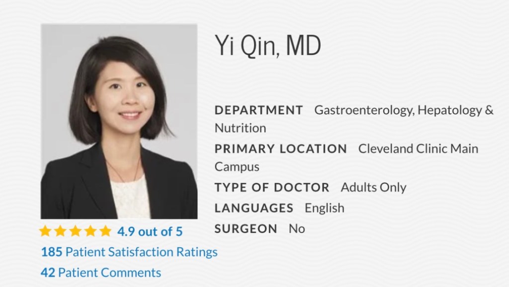 She walked in wearing a starched white coat bearing her name. This was my first meeting with Dr. Yi Qin, MD. She is a diminutive lady standing around 5’4’’ and weighing no more than 90 pounds. I quickly learned that 70 of those pounds are brains. She is a gastroenterologist whose specialty is dealing with esophaguses that are less than cooperative. She had researched the information forwarded from the doctors who were guessing my problem to be spasms of the esophagus, which for the uninitiated closely resemble a heart attack. I could see immediately there would be no guessing with Dr. Yi Qin.