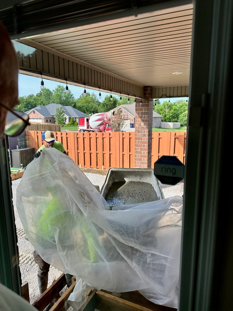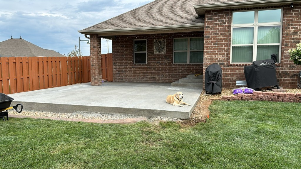 I am old(er). We are tired of exterior wood maintenance and decided to replace an aging wooden deck with a concrete patio. The demolition was taxing. Sorry, it was a real bitch, as we endeavored to save the wood for re-purposing rather than a burn pile. We accepted a couple of bids on the concrete and settled on TJ Rose, a local concrete contractor. His demeanor in the bid process influenced our decision. He and his Hispanic crew were tremendous to work with, with an emphasis on work. TJ is a contractor with his cell phone in his pocket and a tool in his hand. He and his guys hit the ground running and kept moving until the day was done. He is what I describe as a “working contractor” as opposed to a guy who sits in his air- conditioned truck observing from a distance. We got our money’s worth and could not be more pleased with the finished project. I am going to let the pictures do the talking.
