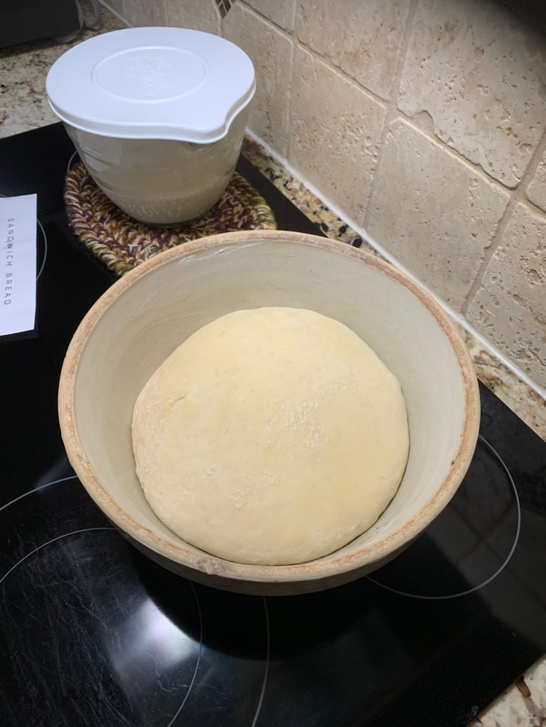 Sourdough bread, both rising and baking. I know of no one who can resist this comforting scent. An aroma that takes me back to my grandmother’s kitchen